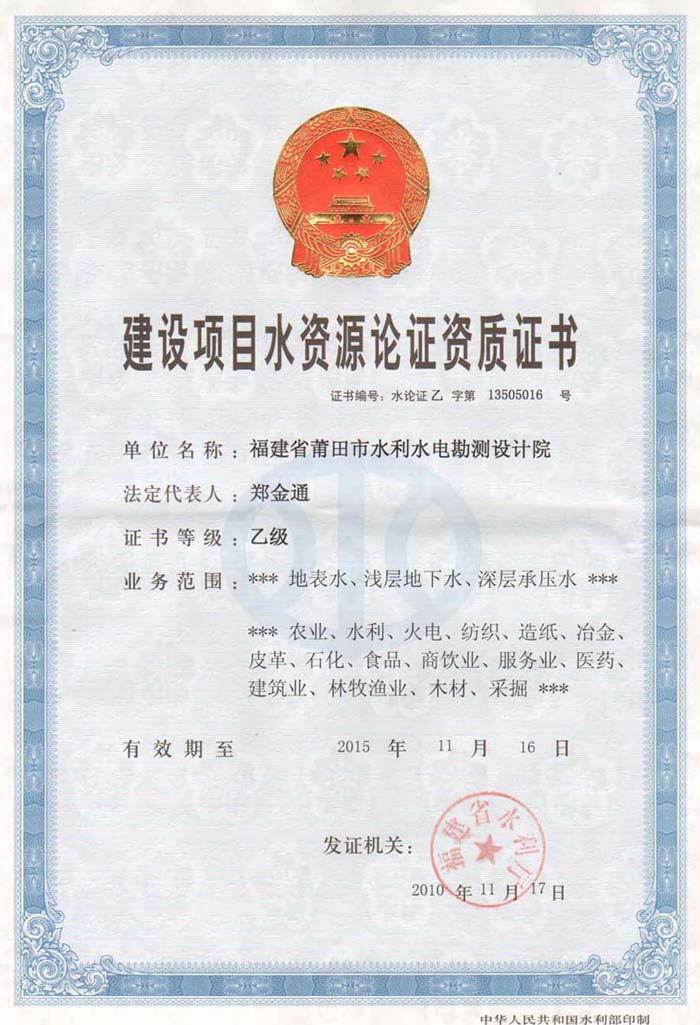 >> 建設(shè)項(xiàng)目水資源論證乙級(jí)資質(zhì)