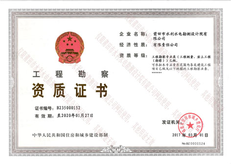 版權(quán)所有 © 2019 :莆田市水利水電勘測設(shè)計院有限公司 郵編:351100
