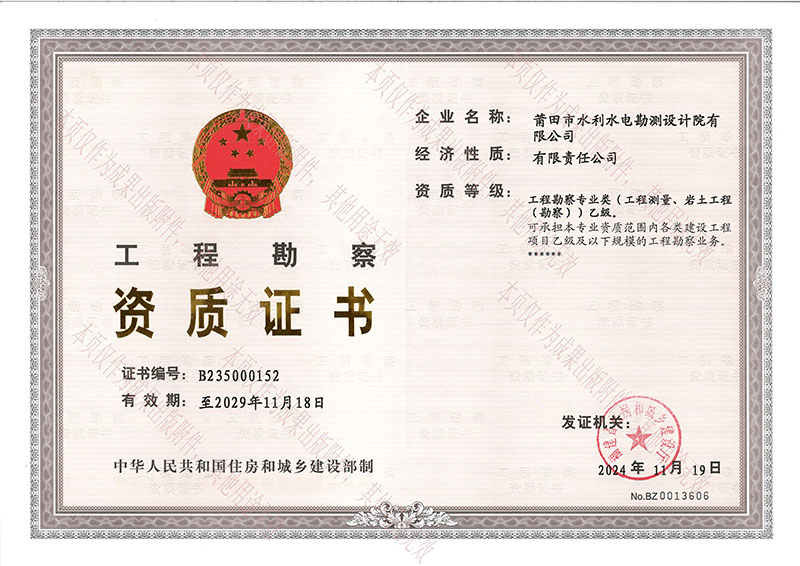 版權(quán)所有 © 2019 :莆田市水利水電勘測設(shè)計院有限公司 郵編:351100