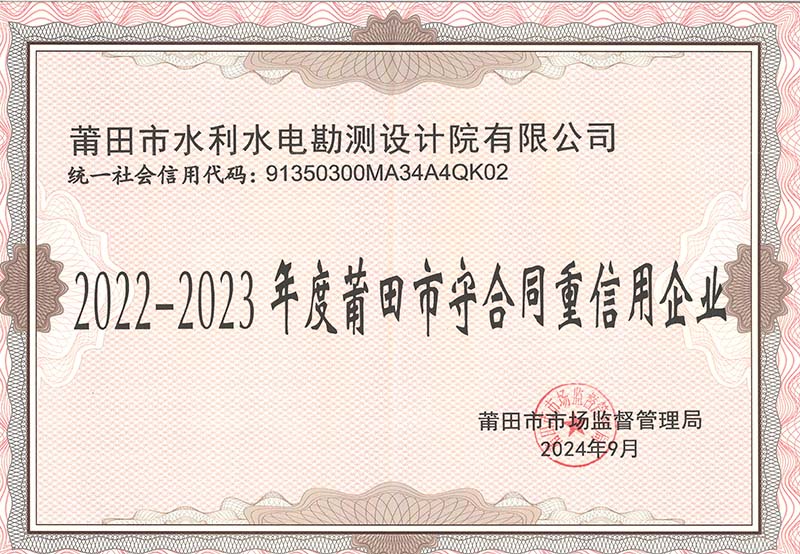 公司榮獲2022~2023年度“莆田市重合同守信用”企業(yè)榮譽稱號