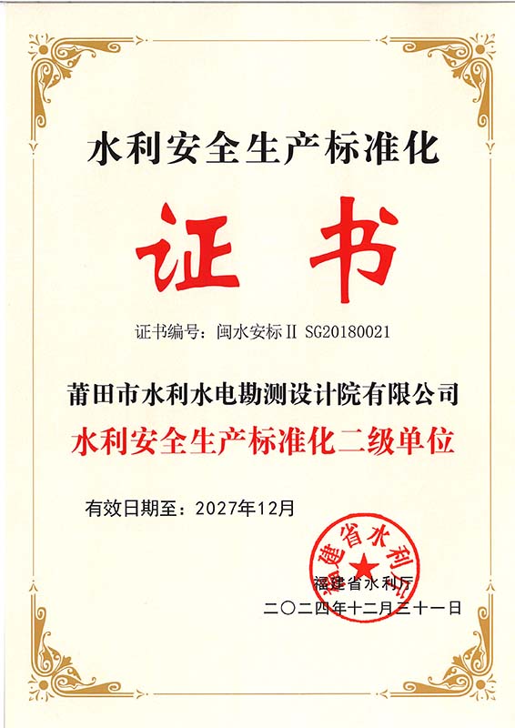 公司通過(guò)水利安全生產(chǎn)安標(biāo)化二級(jí)標(biāo)準(zhǔn)